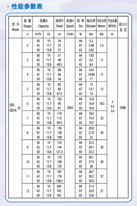 • 【產品規格】  QDL、QDLN42不銹鋼泵