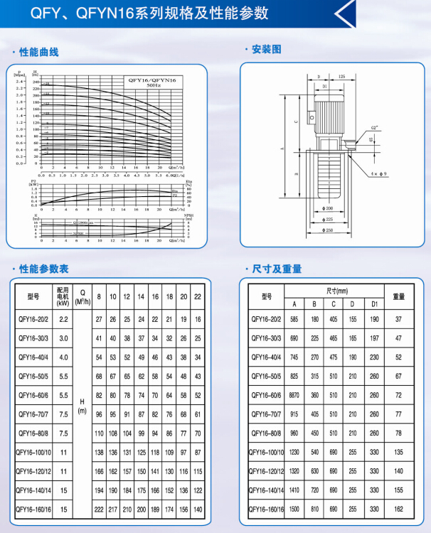 主要用于家庭型中央空調循環及工業液體的傳輸。如脫礦物質水、軟水、凈化系統、輕油等的循環和增壓等。  水泵的第一級葉輪至少應浸入動水位以下1米。機組浸入凈水為以下不得超過70米,其底部距井底不得小于5米;