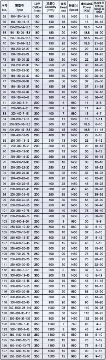 該系列泵排出口徑為50~150,流量10~250m3/h,揚程7~40m,功率0.75~15kW。 |